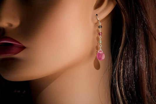 Hot Pink Chalcedon 9,5x25mm lange Briolette-Tropfen, 14K Gold Filled Ohrhaken oder Leverback, Boho, Edelsteinschmuck handgemachtes Geschenk für Sie