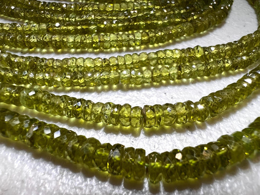 Natural Peridot tyre Wheel Heishi cut Micro Faceted Rondelle 4mm AAA clear quality Gemstone Beads 6” and 12” strand August Birthstone