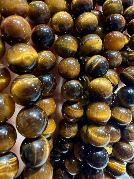 Natural Tiger Eye Brown 8mm Smooth Round Jewelry Making Natural Tiger Eye Gemstone Beads 15" Full Strand AAA quality