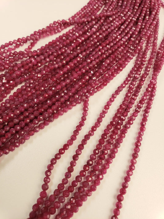 Natural Ruby 3mm Faceted round Dark pinkish Red Gemstone Beads for jewelry Making 12.5" strand