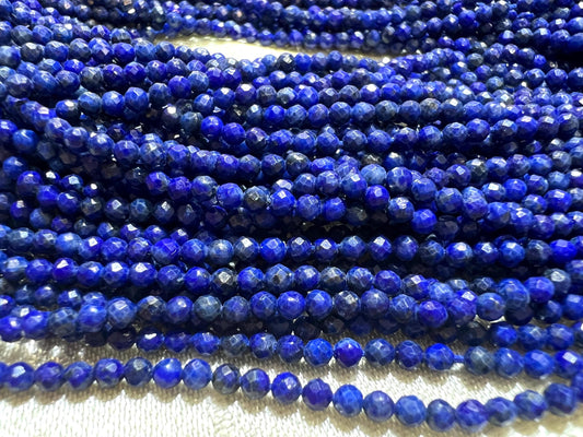Genuine Lapis Lazuli 2.5mm Faceted Roubd Royal Blue Lapis Beads Jewelry Making 13”Strand