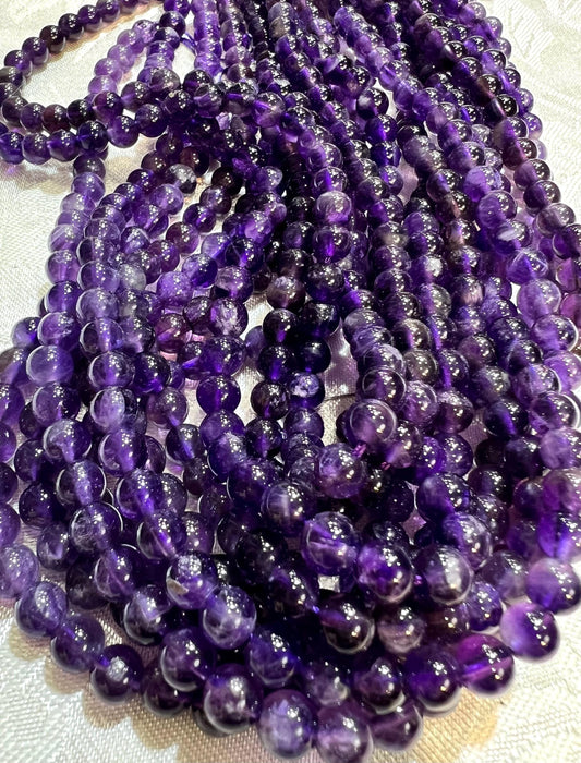Natural Amethyst 7mm Smooth AAA quality Jewelry Making Gemstone Purple Round Beads 14" Strand