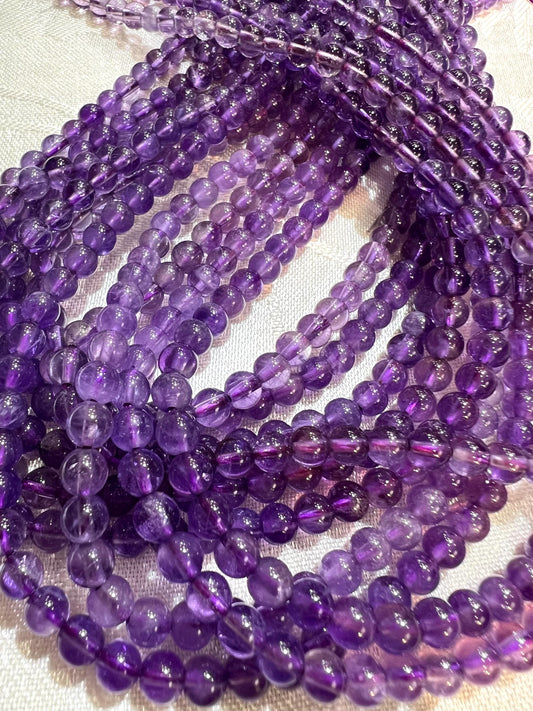 Natural Amethyst 4mm Smooth Round Jewelry Making Gemstone light Purple Round Beads 15” Full Strand