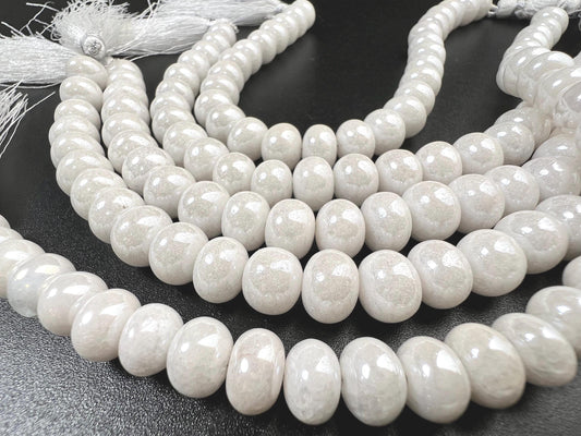 Natural Silverite White Smooth Roundel 8-9mm, Jewelry Making Gemstone Beads 8" strand