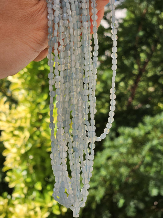 Natürlicher Aquamarin-Edelstein, himmelblau, facettiert, 3,5–4 mm, Münzform, schattierter Aquamarin, Schmuckherstellung, 12-Zoll-Strang. Hohe Qualität