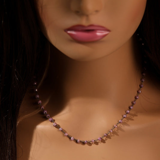 Natürlicher rosa Silberit-Saphir, 4 mm, facettierte Rundungen, oxidiertes Sterling-Silber, drahtumwickelte Halskette, Choker, Layering-Halsketten, Geschenk