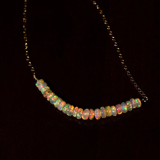 Echter äthiopischer Welo, Feueropal 4,5 mm Roundel in 14K Gold gefüllter Bar-Halskette, AAA Qualität feuriger Welo Opal zierliche elegante Halskette, Geschenk