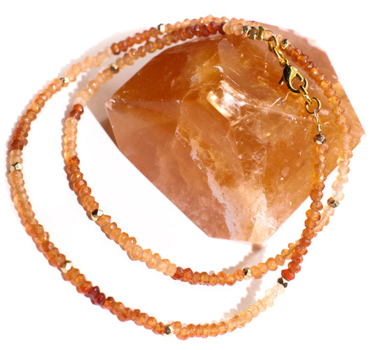 Hessonit Granat 3mm Facettierte Rondell Choker Layering Halskette, handgemachte Goldkette, Herbst, Geschenk für Sie