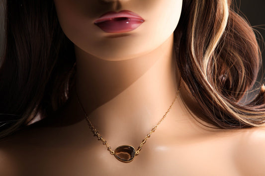 Echte Rauchquarz-Goldfassung mit Rauchquarzdraht umwickelter Edelsteinperlenkette, mit 14 Karat Gold gefüllter langer und kurzer ovaler Kette