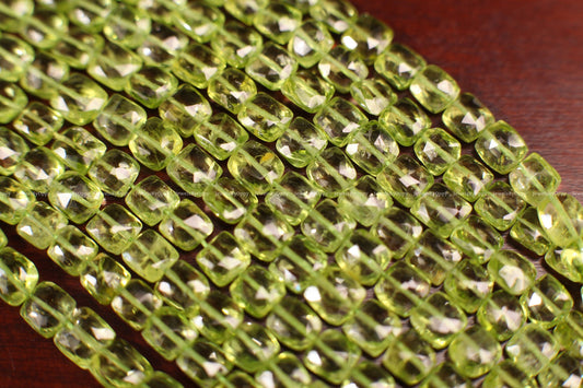 Echter Peridot, facettiert, 4,5–5,5 mm, quadratisch, Kissenform, facettiert, AAA-Qualität, Geburtssteinperlen für August