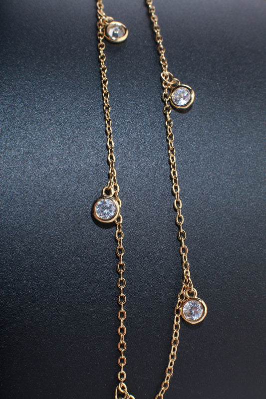 Halskette mit baumelndem Anhänger und Zirkonia-Diamantfassung aus Gold. Geschenk für sie. Verfügbar in den Größen