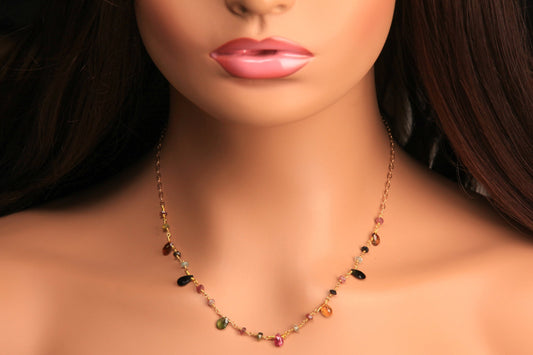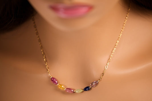 Natürliche Multi-Saphir facettierte ovale 5x8-9mm Edelstein-Halskette mit 14K Gold gefüllten Abstandshaltern, Verschlüssen und Kette, elegantes Geschenk für Sie