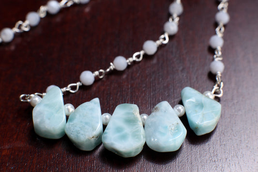 Natürliche Larimar Roh Freiform Tropfen Halskette mit blauer Spitzenachat Edelsteinkette und 925 Sterling Silber Verschluss 19"Handgemachte Halskette