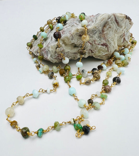 Peruanischer Opal, 4 mm, facettierte Rondell-Rosenkranzkette, drahtumwickelt, goldene Halskette, Choker, Lagenlook, Weihnachtsgeschenk, 14"- 30". Sehr schön