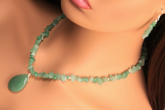 Grüne Aventurin-Halskette mit facettiertem Tropfen-Anhänger, 22 x 30 mm, mit 2 Zoll Verlängerung, passendes Ohrring-Set. Chakra-Energie-Geschenk