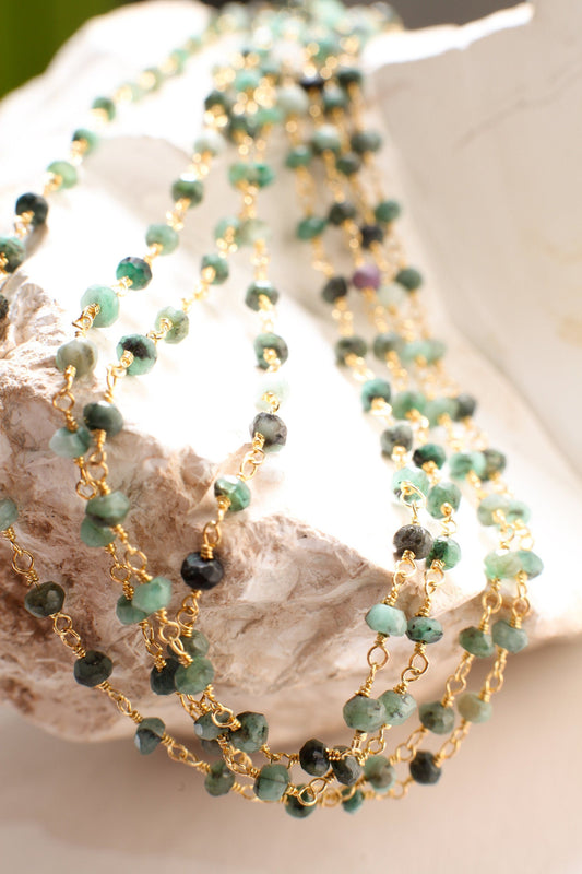 Natürliche smaragdgrüne facettierte 4 mm Rondell-Drahtumwicklung, 22 Karat Gold Vermeil über 925 Sterling Silber, handgefertigte Halskette, Weihnachtsgeschenk, 14"- 30"