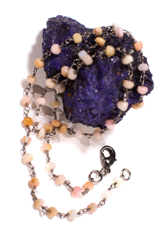 Labradorit, Turmalin, Peruanischer Opal, Rosa Opal, Spinell, Mondstein, Pfirsichmondstein, Perle, Rhodonit, Türkis, Silberoxidierte fertige Halskette