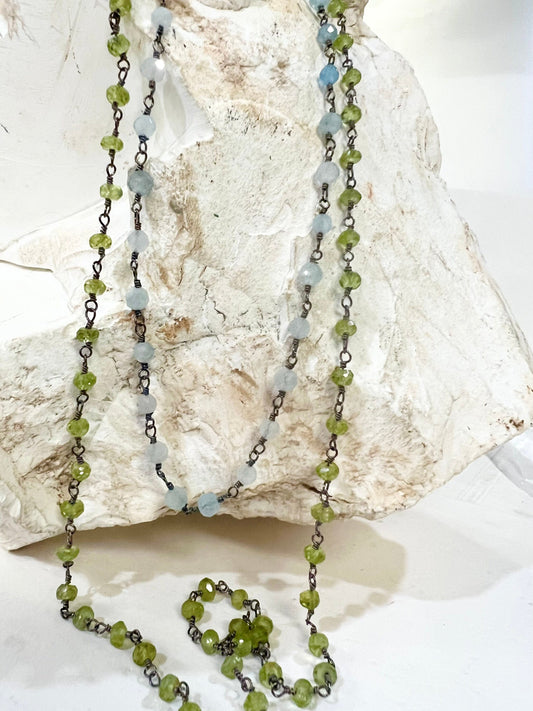 Aquamarin, Peridot 3 mm facettiert Draht umwickelt oxidierte Silber Rosenkranz Kette handgemachte Halskette, Halsband, Schichtung 14"-36"