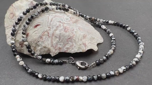 Schwarze und weiße Madagaskar Feuer Achat Micro Facettiert 3mm Runde AAA Perlen Choker Layering Halskette Geschenk für Männer und Frauen