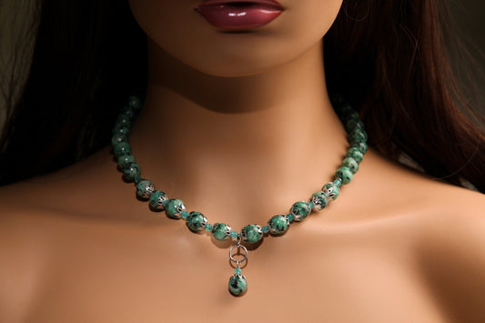 Aqua Tera Grüner Jaspis 10 mm runder Anhänger Halskette mit Apatit Abstandshalter, passende Ohrringe Schmuckset 18" plus 2" Verlängerung