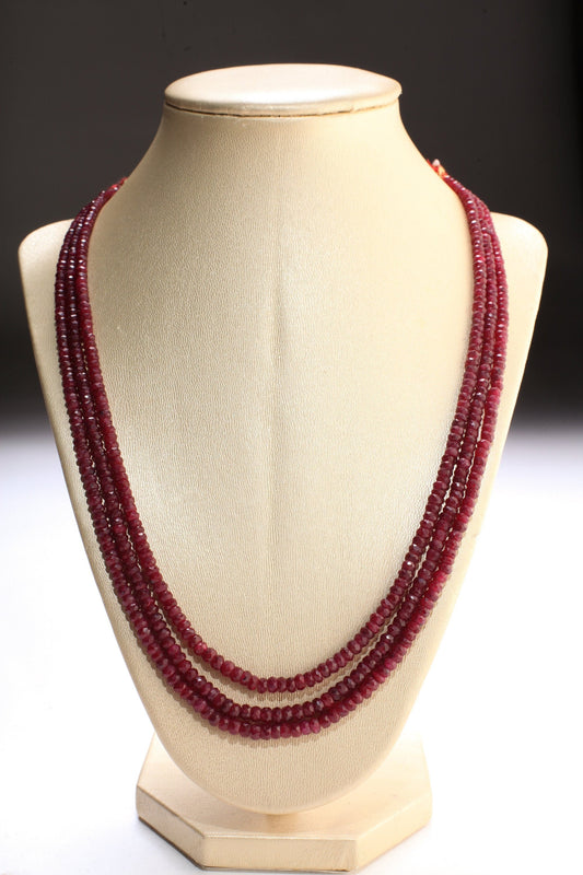 AAA-Ringkette mit natürlichen Rubinen, 4–4,5 mm, mehrreihig, 3-reihige Edelstein-Rondell-Halskette, 15,5 Zoll plus 9 Zoll verstellbarer Faden. 234 Karat