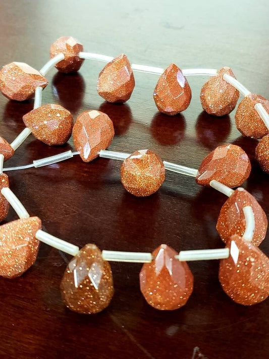 4 Stück Goldstein, 10 x 14, facettierter Birnentropfen, Goldsandstein, Schmuckherstellung, Halskette, Ohrringe, Kunstdekorperlen.