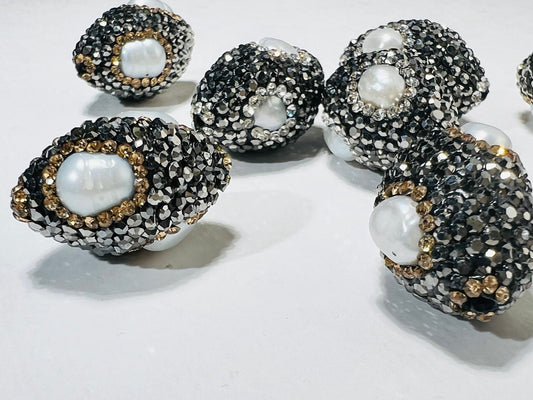 Süßwasser-Keshi-Perle, eingelegter schwarzer Strass-Kristall, handgefertigte ausgefallene Fokalperle, 17 x 24 mm, 1 Stk., Schmuckherstellung, Bling Oval Spacer Perle