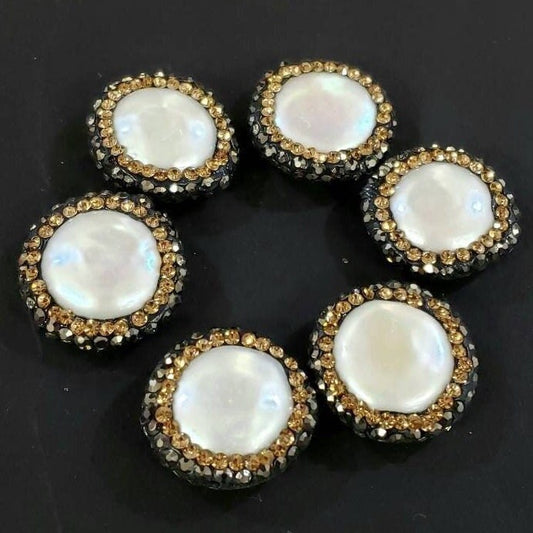 Süßwasser-Münzperle, mit Strasssteinen besetzte Kristallperle in Schwarz und Gold, mittig gebohrt, 19 mm glitzernder Verbinder, Abstandshalter oder Brennperle.