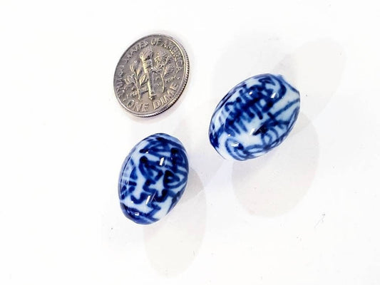 2 Stück ovale Porzellanperle „Long Life“, Blumenperle, 12 x 18 mm, ovale Perle für Art Deco, Schmuckherstellung, Vintage, Antik, handgefertigte Perle.