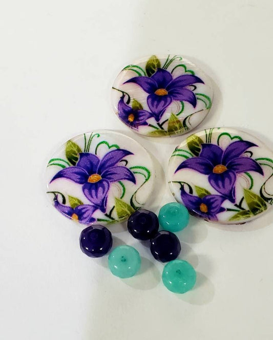 Perlmuttmuschel, lila Blume, 30 mm, Scheibe zur Schmuckherstellung, Ohrring-Mittelpunktperle, 3-teiliges Set enthält 6 passende runde Jadeperlen.