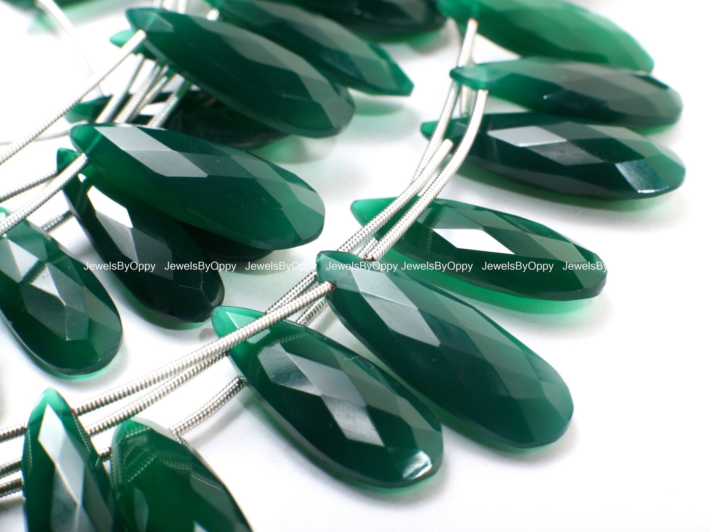 Grüner Onyx Facettiert Langer Birnentropfen 25x8-29x11mm, AAA Reichhaltiges Dunkelgrün Schmuckherstellung Armband, Halskette Ohrringe Edelsteinperlen