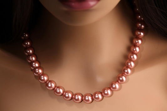 Copper Pink South Sea Shell Pearl 12mm Large High Luster Statement Necklace with Mag Ball Clasp Necklace, Bridal, Gift for Her