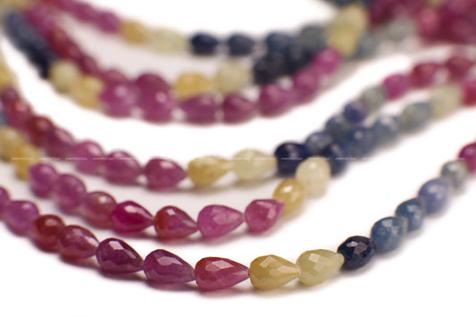 Multi Sapphire Briolette, Natural Multi Sapphire Micro Faceted Teardrop 4-5x6mm Briolette DIY Jewelry Making Gemstone Bead