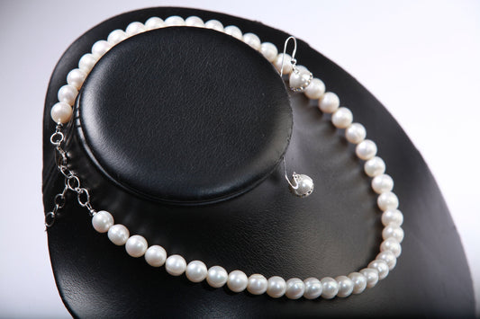 Natural AA Japanese Fresh Water Cultured Pear10mm1Bridal Necklace, Earrings Sets,925 Sterling Silver Extension Chain,Lobster Clasp, Ear Wire