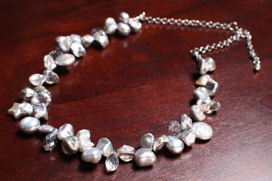 Natural Freshwater Gray silver Keshi Pearl High Luster Pearl with Crystal Spacers Necklace with 4" Extension