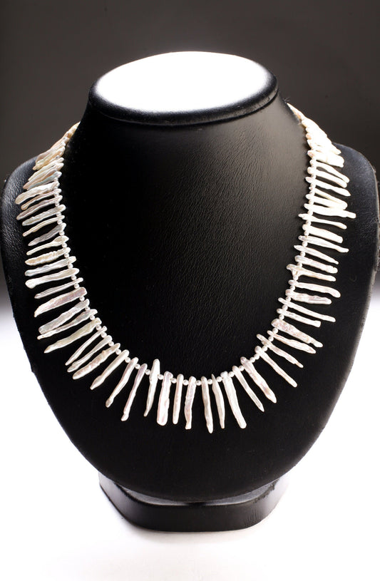 Natural Fresh Water Japanese Biwa Stick Pearl and Potato Pearl Necklace in 925 Sterling Silver Hook & Eye Clasp, Pic shown 22" Necklace
