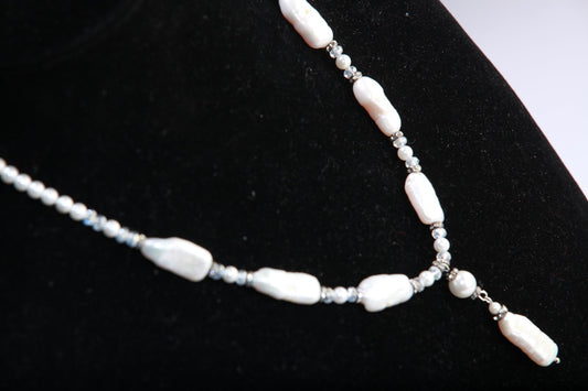 Natural Freshwater Biwa stick Pearl 10x20mm and freshwater Pearl and Crystal spacer Adjustable Chains 16.5" to 18" Y Necklace