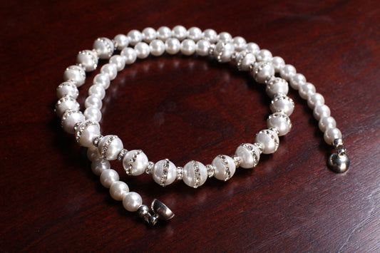South Sea Shell Pearl Smooth 8mm Round and Rhinestone Pearl Beads White Necklace, Bridal with Mag ball clasp , Gift for Her