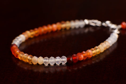 Mexican Fire Opal 4.5mm Faceted Orange Shaded Rondelle Bracelet, AAA Quality Natural Mexican Opal Gemstone, 925 Sterling Silver, Gold Filled