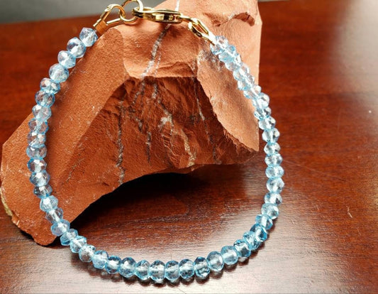 Blue Topaz 4mm Faceted Bracelet in 14k Gold Filled lobster Clasp and findings, Chakra, December Birthstone