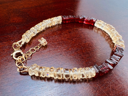 Citrine Smooth heishi Garnet Square heishi 5mm Bracelet in 14k Gold Filled lobster Clasp and findings , healing , energy Chakra gift