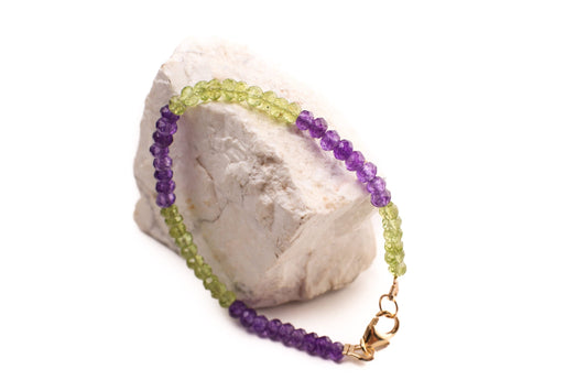 Amethyst, Peridot 4mm Faceted Bracelet in 14k Gold Filled or 925 Sterling Silver, lobster Clasp and findings , healing Chakra gift