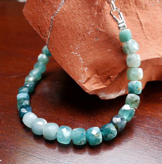 Natural Grandidierite cube shape 5x5mm Faceted teal Green Shaded square dice beaded bracelet in Sterling Silver, Gold Filled. Rare Gemstone
