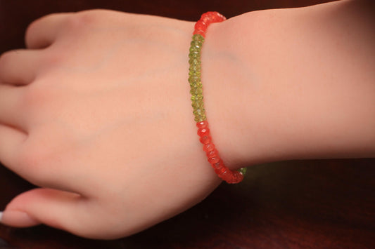Carnelian , Peridot 4mm Faceted Bracelet in 14k Gold Filled or 925 Sterling Silver lobster Clasp and findings , healing , energy Chakra gift
