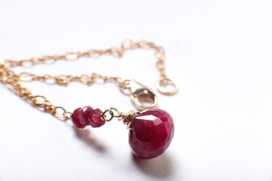Ruby Onion Drop Briolette, Genuine Ruby Wire Wrapped Faceted 9-10mm Onion drop Ruby Rondelle in 14K Gold Filled Figure 8 Chain Necklace gift