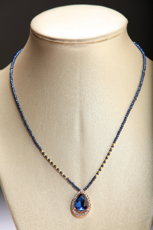 Sapphire Spinel with Cubic Zirconia Rose Gold Charm 16" Necklace