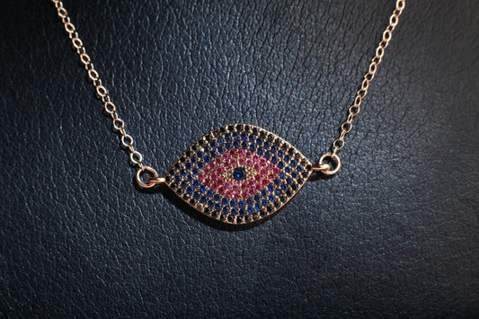 CZ Diamond Evil Eye Pendant with 14K Gold Filled Necklace, 3 Choice of Colors in 16",18",20", 22" and 24"