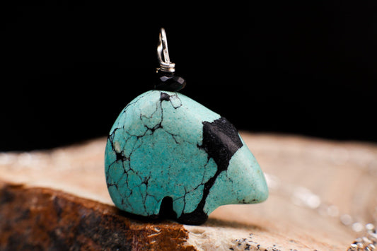 Genuine Tibetan Spiderweb Turquoise Carved Zuni Bear Vintage Gemstone Charm in 925 Sterling Silver Necklace Optional ,Choose your Bear .