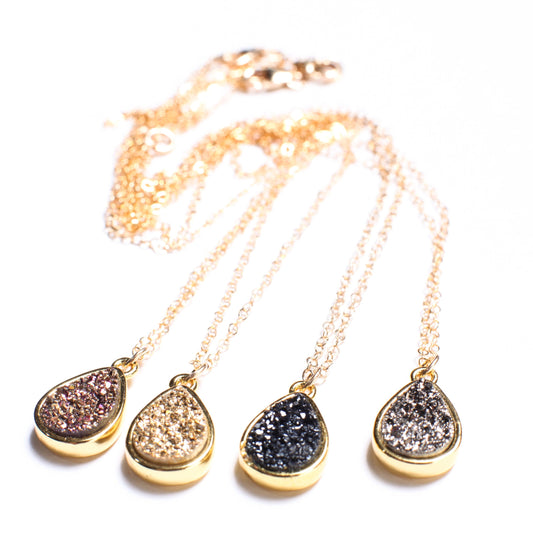 Druzy Geode Gemstone Pendant in 4 colors of Purple, Gold, Silver, Dark Navy Blue Sparkly, 14K Gold Filled Chain, 14", 16", 18",20" Necklace