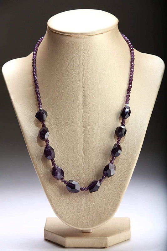 Natural Amethyst Purple Faceted Freeform tumble raw hexagon Gemstones , 4mm faceted Amethyst with Rhodium Lobster Clasps Necklace 20"